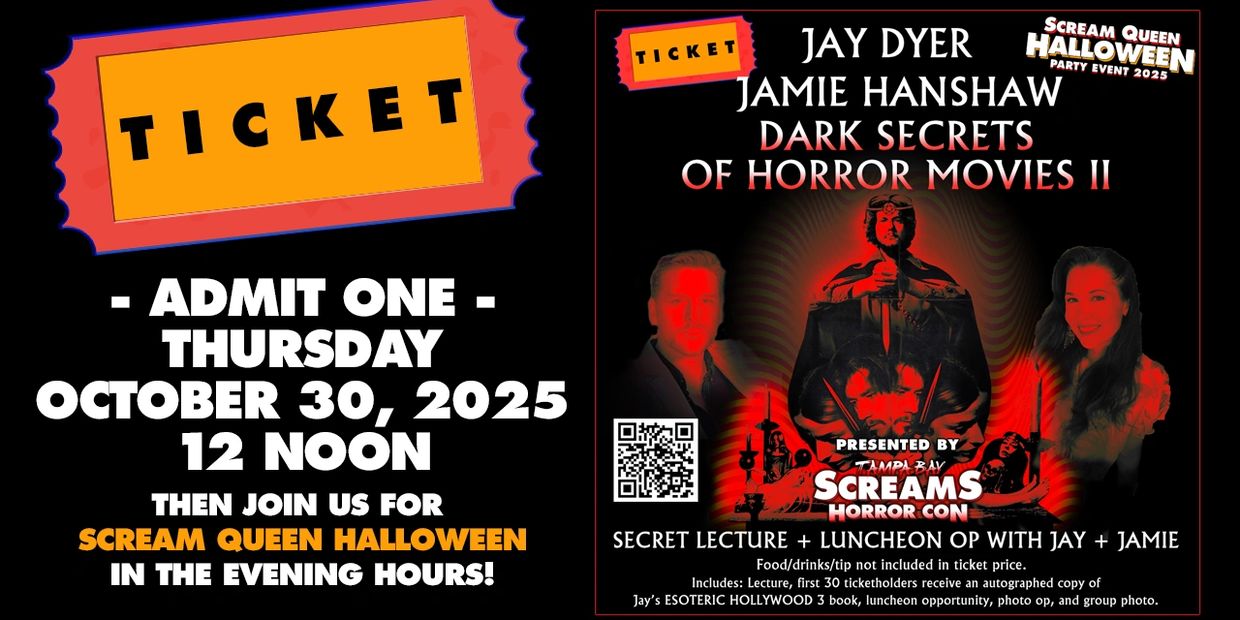 After the Lecture Luncheon, join us for SCREAM QUEEN HALLOWEEN in the evening hours!